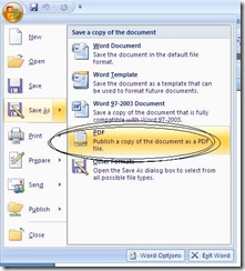 Frist of all you should to install 2007 Microsoft Office Add-in: Microsoft Save as PDF (very small about 934 KB) .